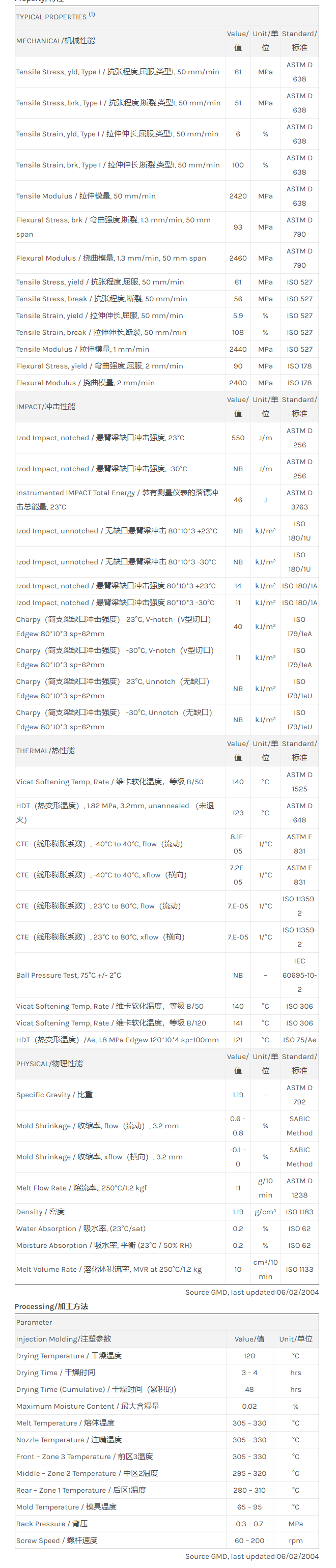Lexan OQ1022 resin是一种聚碳酸酯(PC)产品。它可以通过注射成型进行处理。