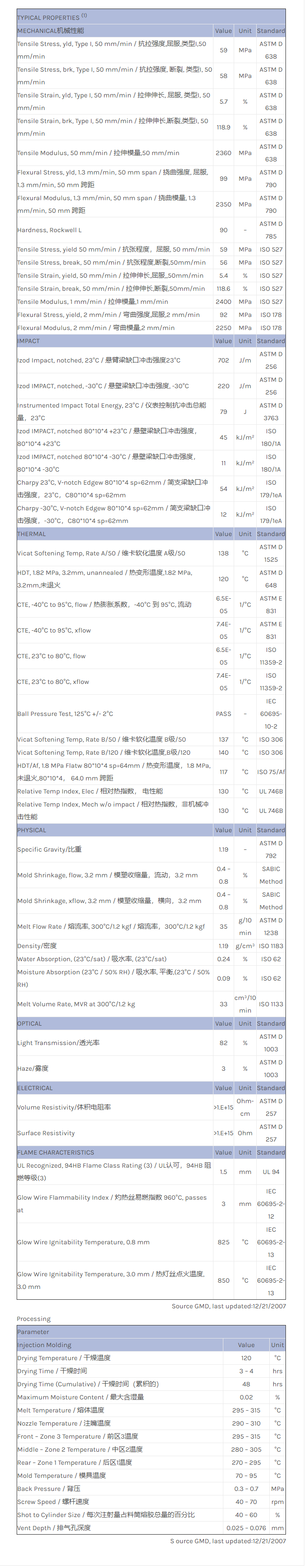 LEXAN PC EXRL0495物性表