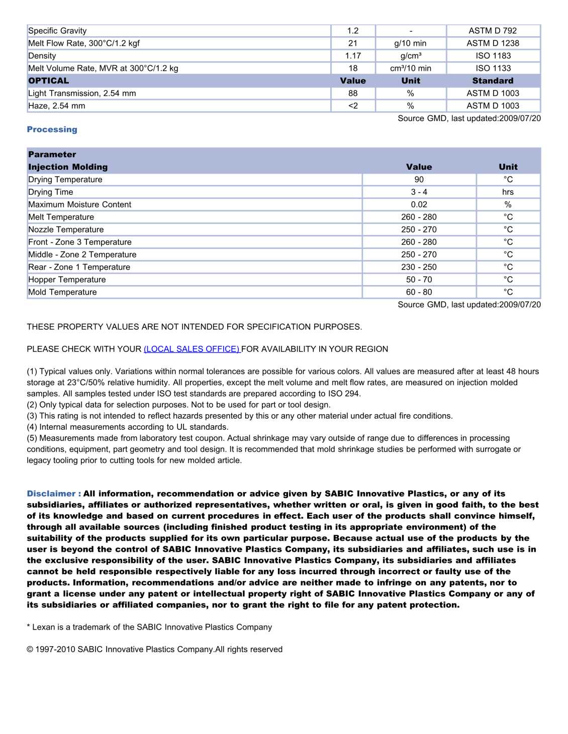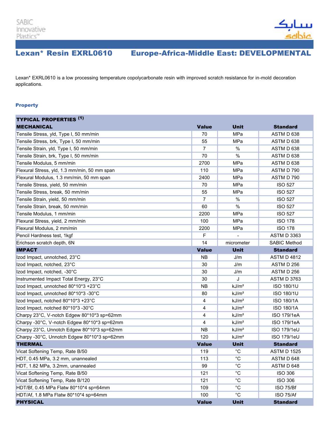 LEXAN PC EXRL0610物性表