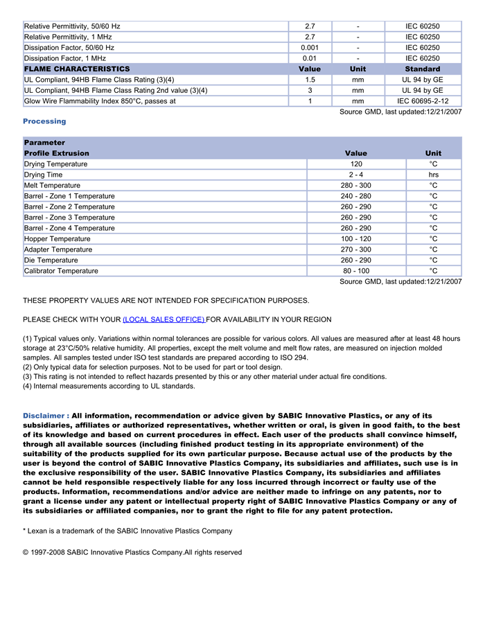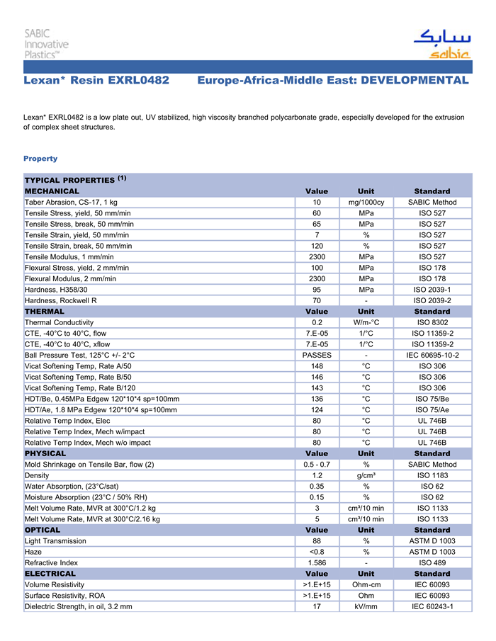 相关标签:Lexan PC 挤出,LEXAN PC EXRL0482,