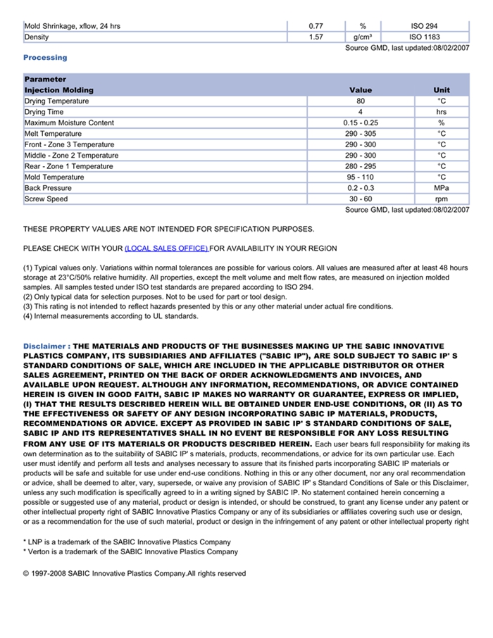 应用范围: 产品描述 LNP Verton RVL28物性表 “LNP VERTON RVL28是一种聚酰胺66(尼龙66)材料,含有的填充物为长玻璃纤维,加工方式为:注射成型。 LNP VERTON RVL28的主要特性有: 加工性能良好 润滑” LNP* Verton* RVL28 is a compound based on Nylon 66 resin containing Long