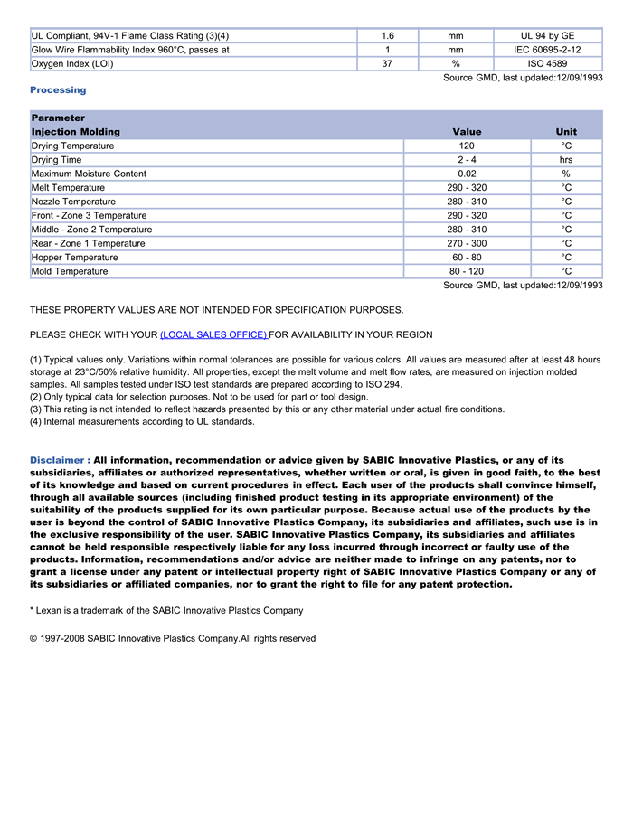 LEXAN PC ML3382物性表
