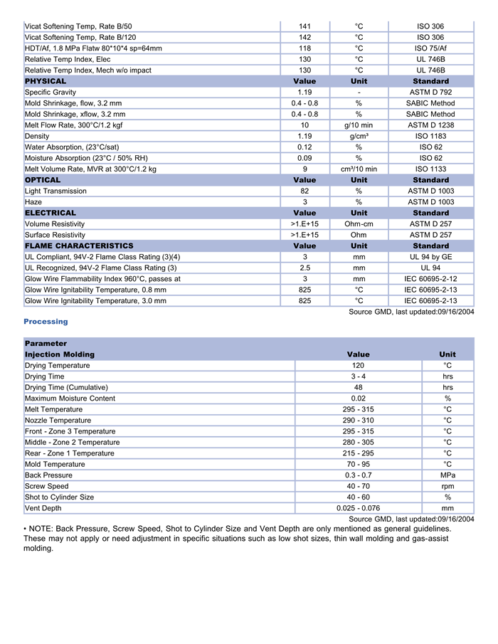 应用范围:产品描述Lexan PC EXL1443T物性表“Lexan EXL1443T resin是一种聚碳酸酯(PC)产品,它可以通过注射成型进行加工,典型应用领域为:食品接触应用。特性包括:阻燃/额定火焰共聚物加工性能良好可接触食品快速成型周期”。相关颜色色号:EXL1443TNA8A005TLexan* EXL1443T polycarbonate (PC) siloxane copolymer r