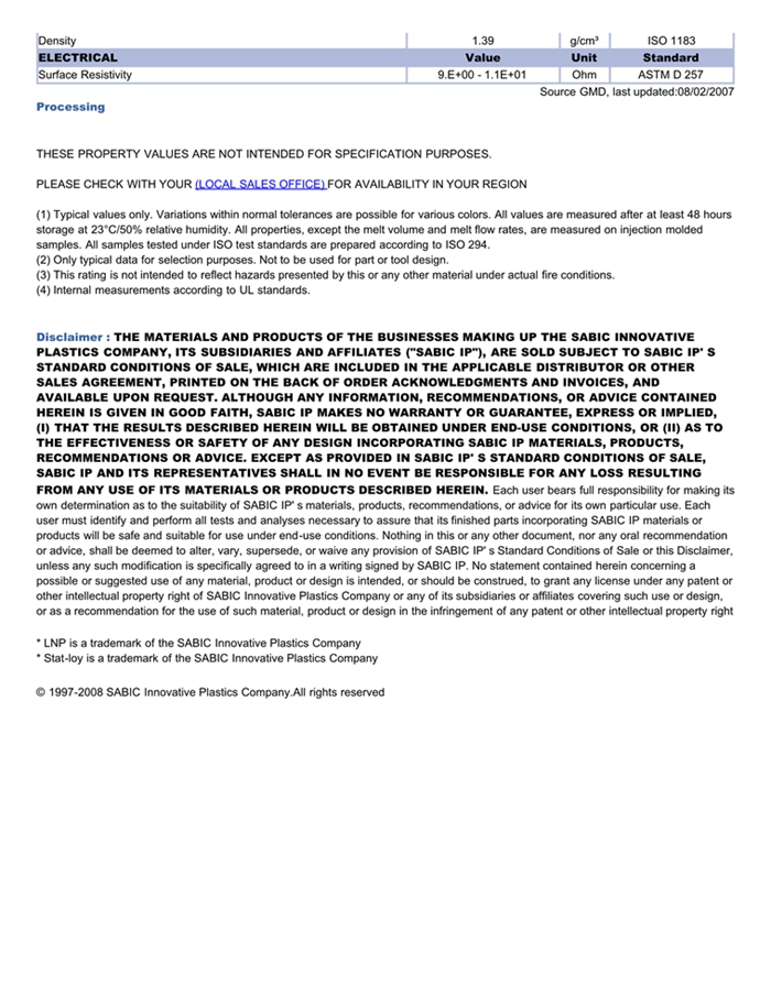 江门LNP STATLOY PFD06物性表