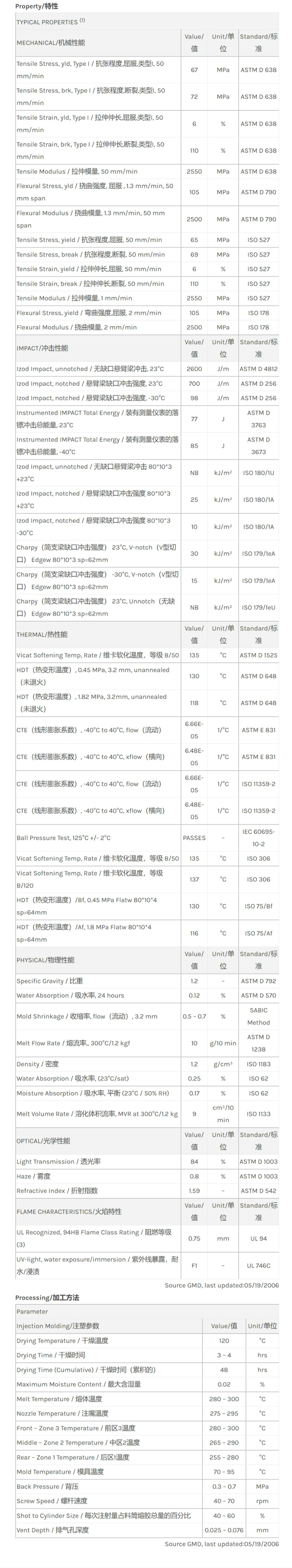“Lexan SLX1432T resin是一种聚碳酸酯(PC)材料,加工方式为:注射成型。