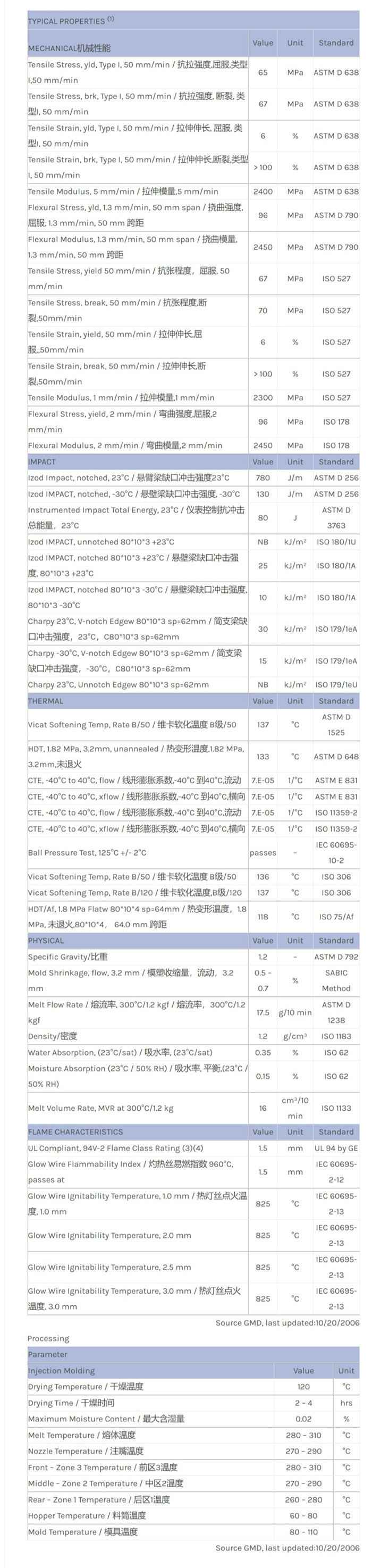 应用范围:产品描述LEXAN PC SLX2231D物性表Low viscosity PC copolymer blend with enhanced UV stabilization and added release agent. V2 rated. Diffusion colors.
