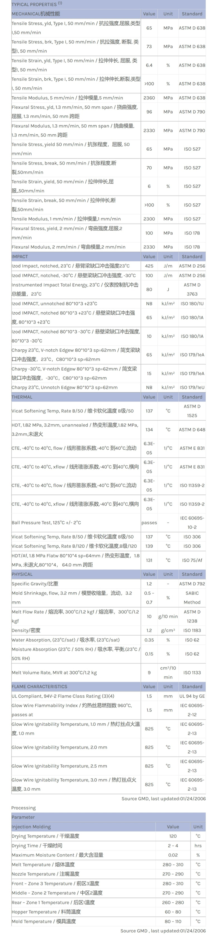 应用范围:产品描述LEXAN PC SLX2431D物性表Medium viscosity PC copolymer blend with enhanced UV stabilization and added release agent. V2 rated. Available in diffusion colors.