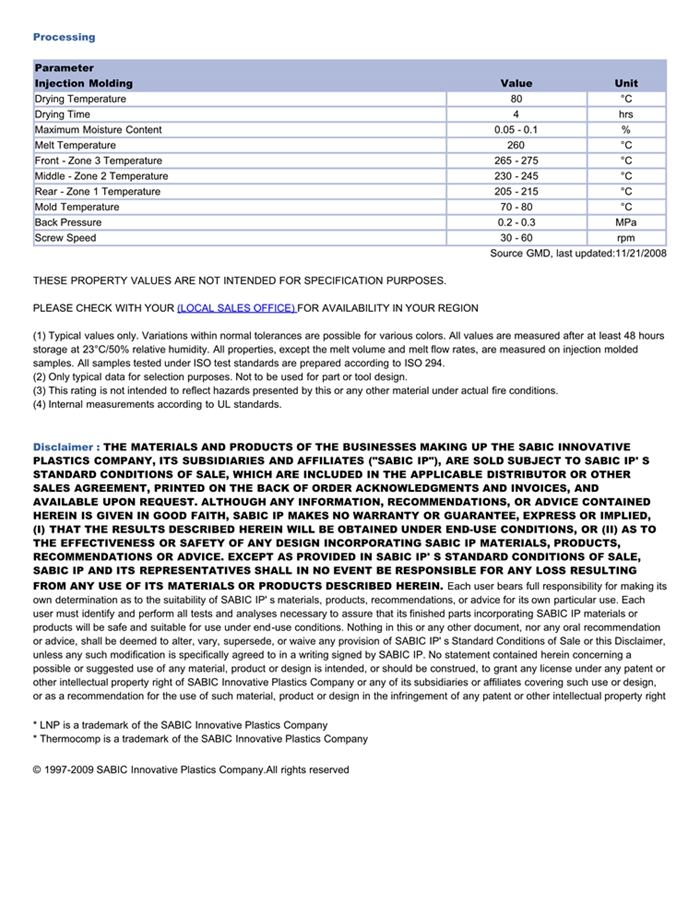 应用范围:产品描述LNP Thermocomp AX04518物性表LNP THERMOCOMP AX04518是一种丙烯腈丁二烯苯乙烯(ABS)产品,含有的填充物为专有填料,可以通过注射成型进行加工。LNP* Thermocomp* AX04518 is an ABS base resin with proprietary fillers.Property/特性