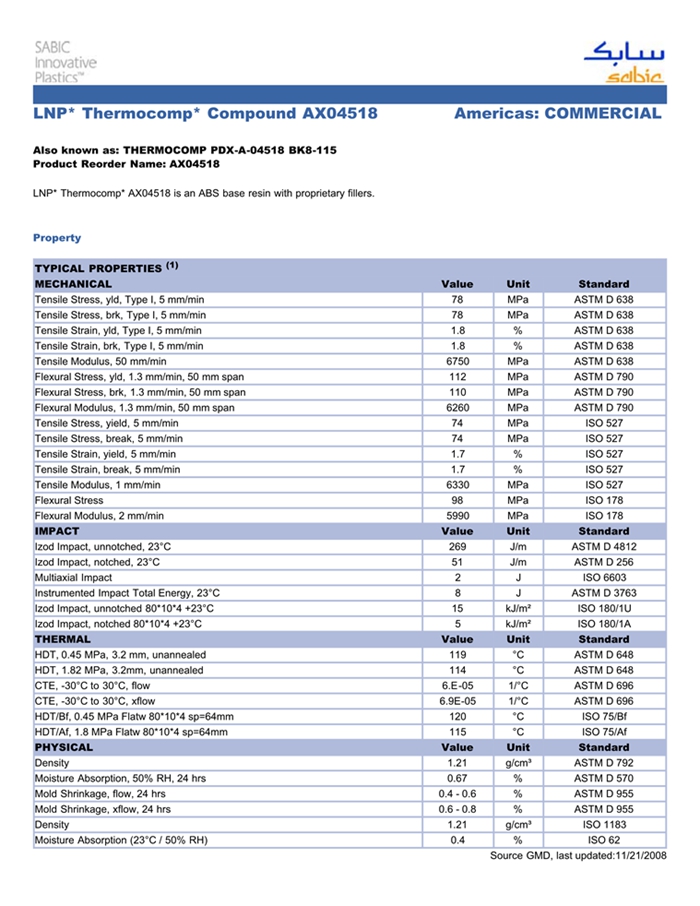 LNP* Thermocomp* AX04518 is an ABS base resin with proprietary fillers.