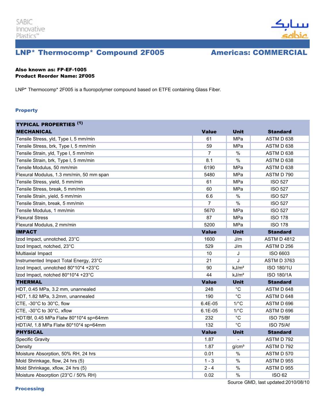 应用范围: 产品描述 LNP THERMOCOMP 2F006物性表