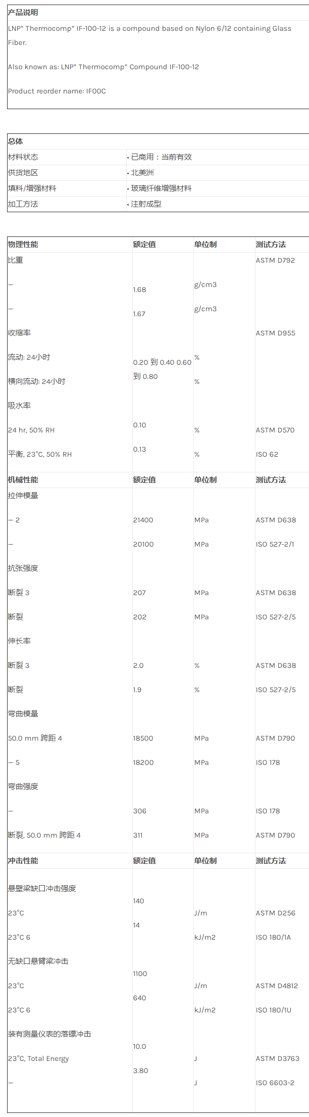应用范围:产品描述LNP THERMOCOMP IF00C物性表
