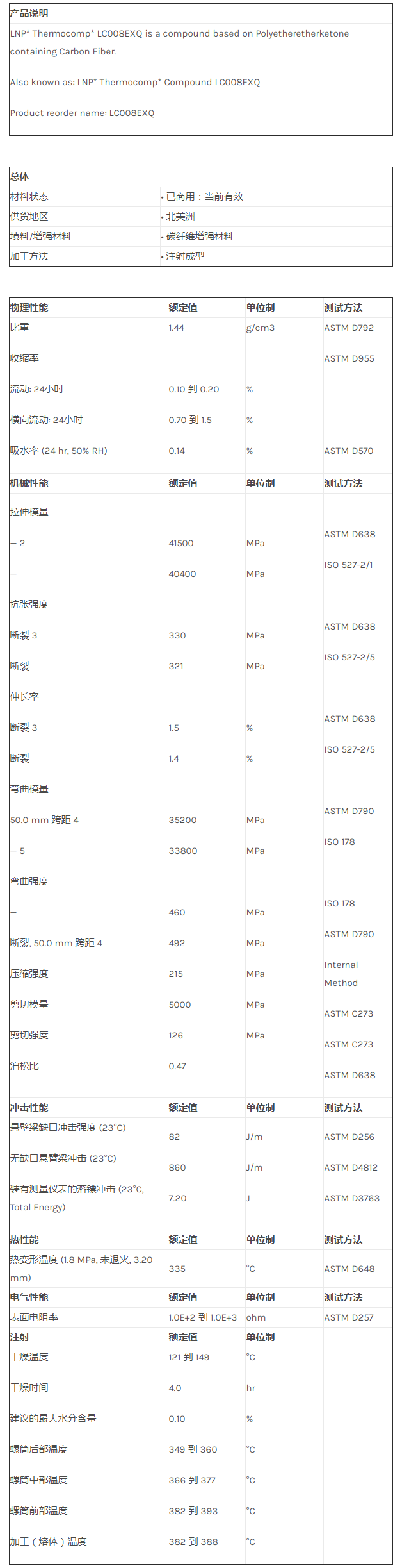 应用范围:产品描述LNP THERMOCOMP LC008EXQ物性表