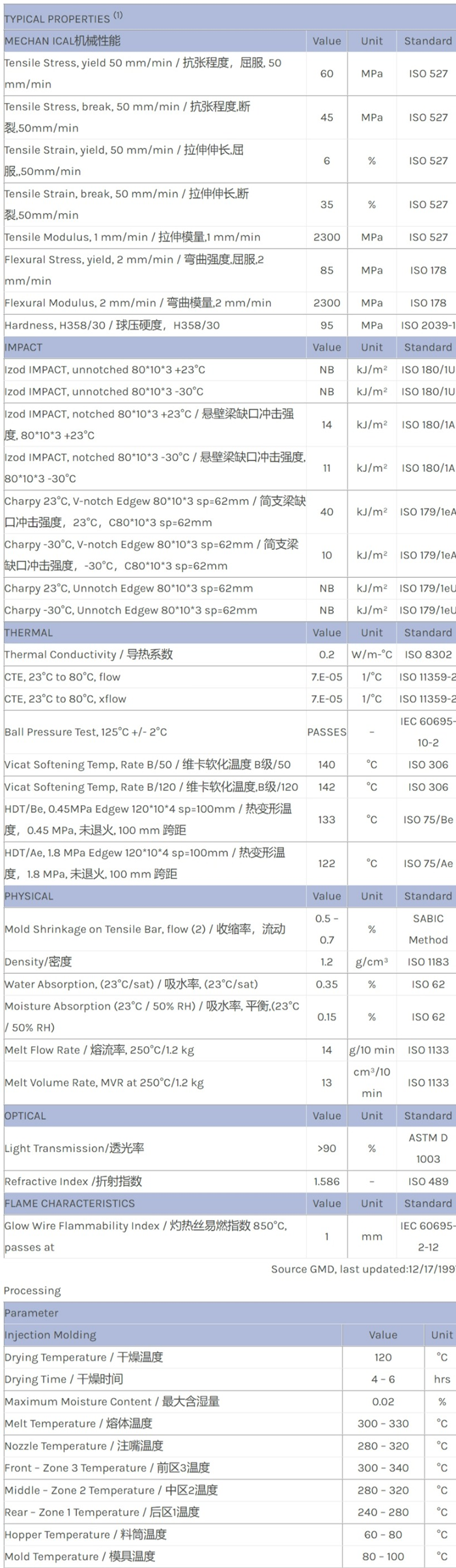 江门LEXAN PC OQ1030LN物性表