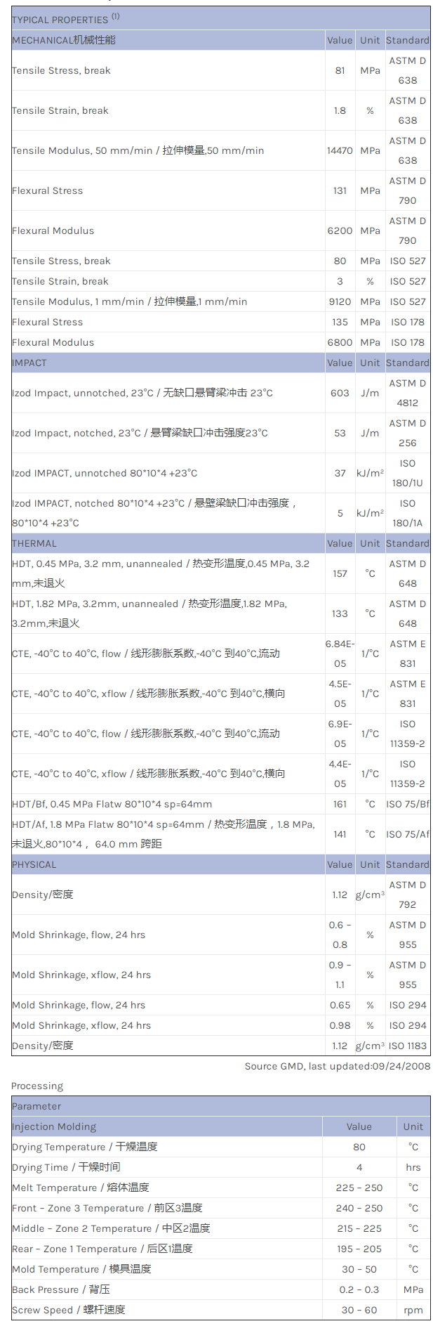 江门LNP THERMOCOMP MF006S是一种聚丙烯产品,含有的填充物为30%玻璃纤维增强材料,可以通过注射成型进行加工。