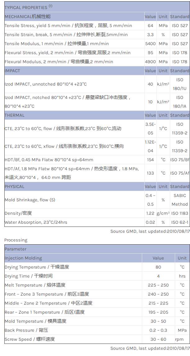 江门LNP THERMOCOMP MFB63是一种聚丙烯材料,含有的填充物为玻璃纤维增强材料和玻璃珠\玻璃纤维,加工方式为:注射成型。