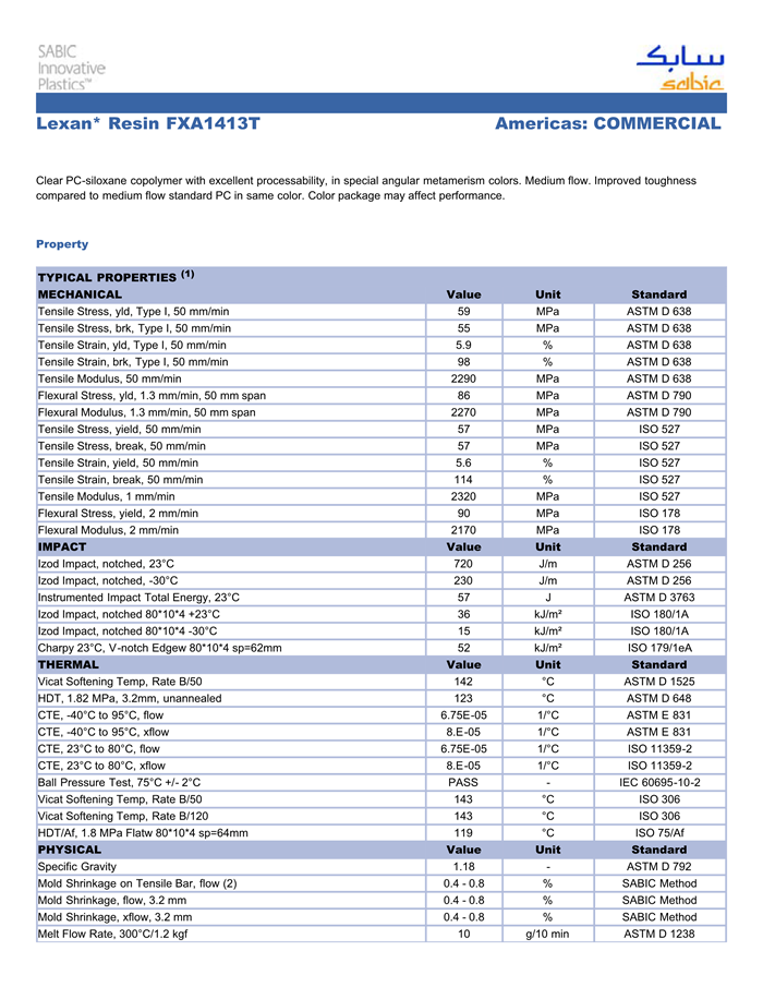 相关标签:Lexan PC 其他,LEXAN PC FXA1413T,
