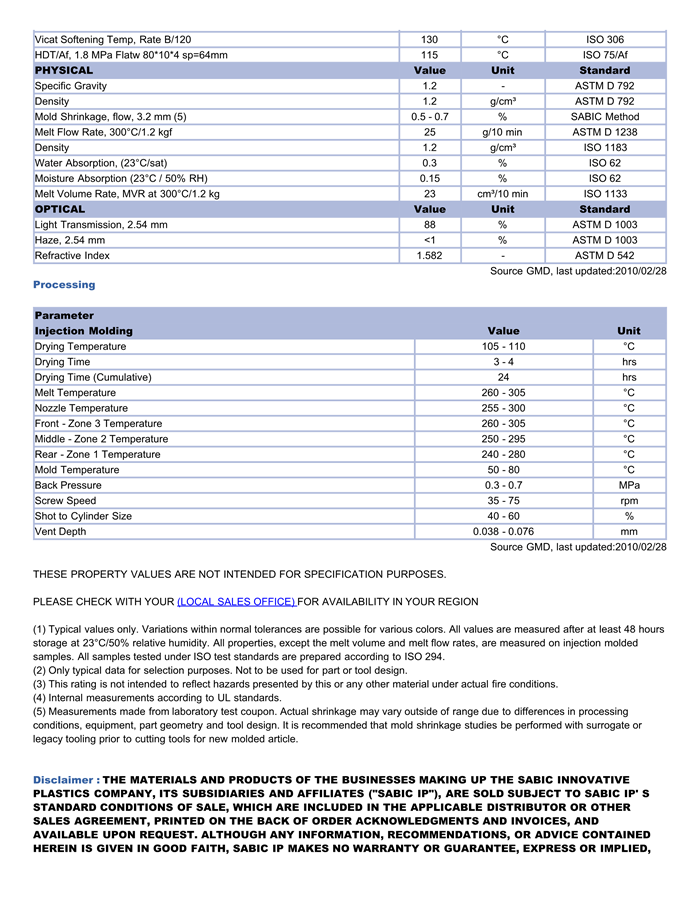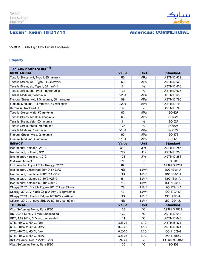 LEXAN PC HFD1711物性表