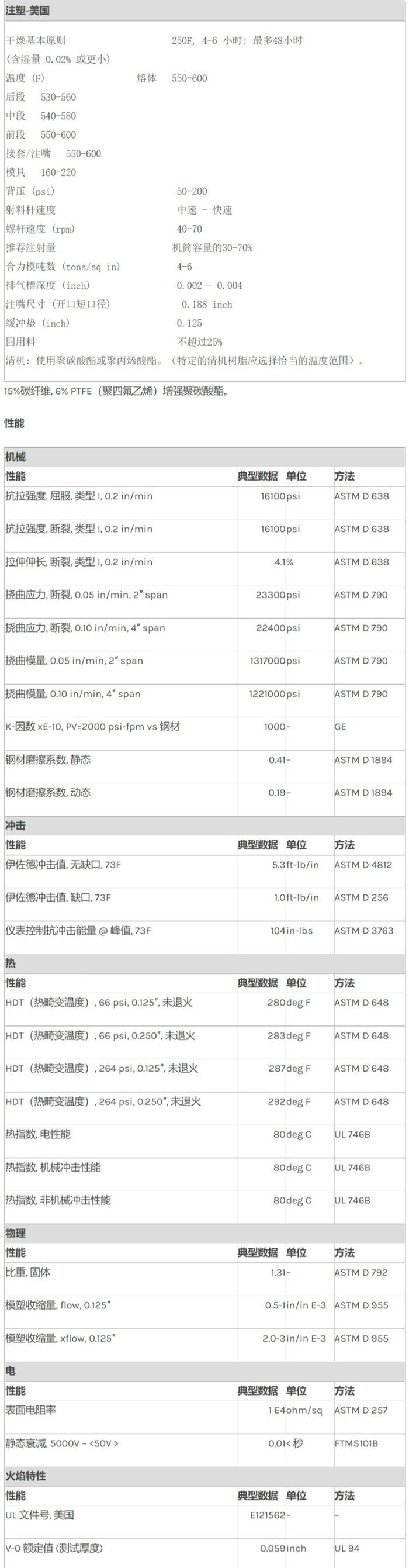 应用范围: Lexan PC LCF1506物性表 15%碳纤维, 6% PTFE(聚四氟乙烯)增强聚碳酸酯。 加工 产品描述