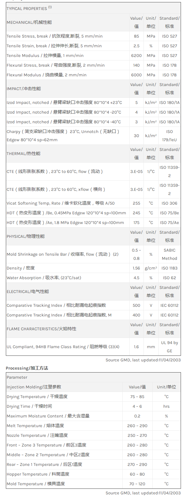 “江门LNP THERMOCOMP RB00A是一种聚酰胺66(尼龙66)材料,含有的填充物为50%玻璃珠,加工方式为:注射成型。