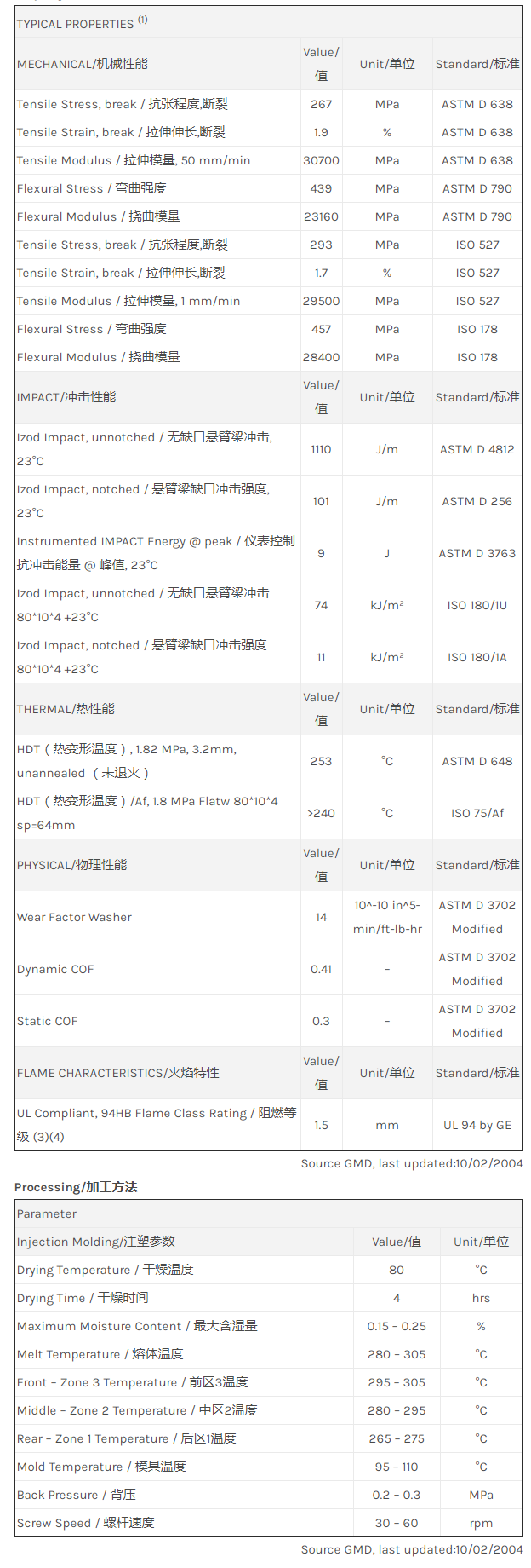 应用范围: 产品描述 LNP Thermocomp RC008物性表 “LNP THERMOCOMP RC008是一种聚酰胺66(尼龙66)产品,含有的填充物为40%碳纤维增强材料,可以通过注射成型进行加工。 特性包括: 阻燃/额定火焰 传导性” LNP THERMOCOMP* RC008 is a compound based on Nylon 66 resin containing Car
