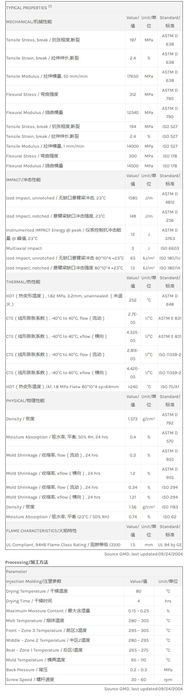 应用范围: 产品描述 LNP Thermocomp RF00AS物性表 “LNP THERMOCOMP RF00AS是一种聚酰胺66(尼龙66)产品,含有的填充物为50%玻璃纤维增强材料,可以通过注射成型进行加工。 特性包括: 阻燃/额定火焰 热稳定剂” 相关颜色色号:RF00AS-BK1A817 LNP THERMOCOMP* RF00AS is a compound based on N