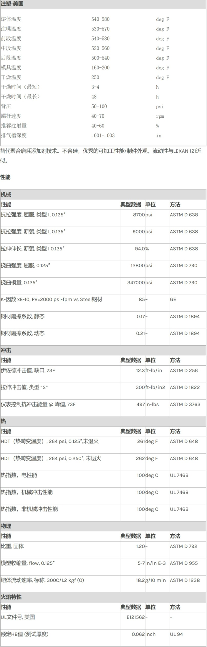 应用范围:产品描述Lexan PC WR2210物性表替代聚合磨耗添加剂技术。不含硅,优秀的可加工性能/制件外观。流动性与LEXAN 121近似。加工