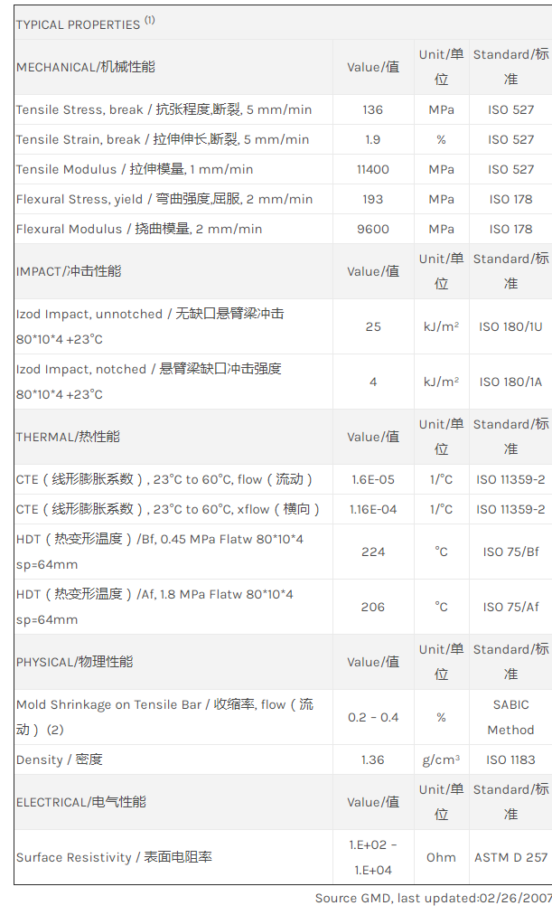 应用范围: 产品描述 LNP Thermocomp WC003物性表 “LNP THERMOCOMP WC003是一种聚丁烯对苯二甲酸酯(PBT)材料,含有的填充物为碳纤维增强材料,加工方式为:注射成型。 LNP THERMOCOMP WC003的主要特性有: 通过ROHS认证 传导性” 相关颜色色号:WC003-BKNAT LNP* Thermocomp* WC003 is a compo