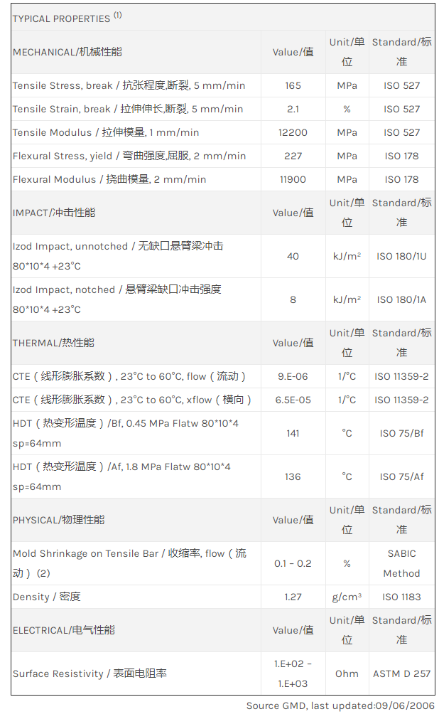 “江门LNP THERMOCOMP DC004E是一种聚碳酸酯(PC)材料,含有的填充物为碳纤维增强材料。