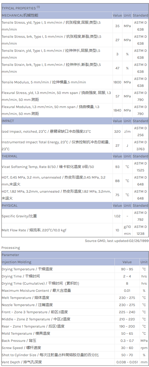 CYCOLAC ABS 29360D物性表