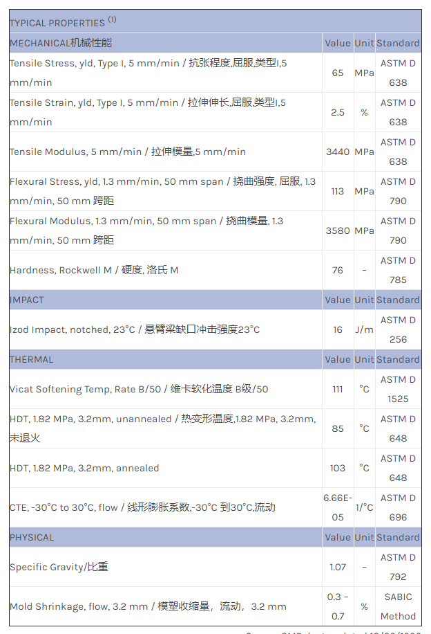 CYCOLAC ABS 58581物性表