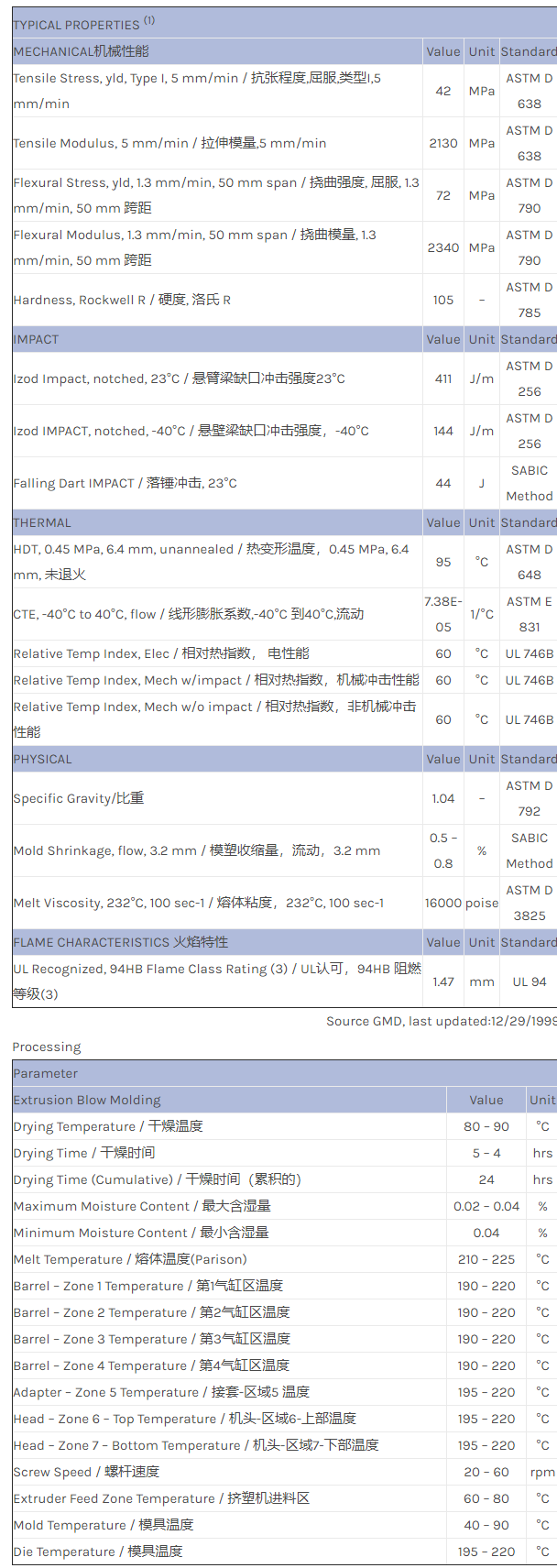 CYCOLAC ABS GPB3800物性表