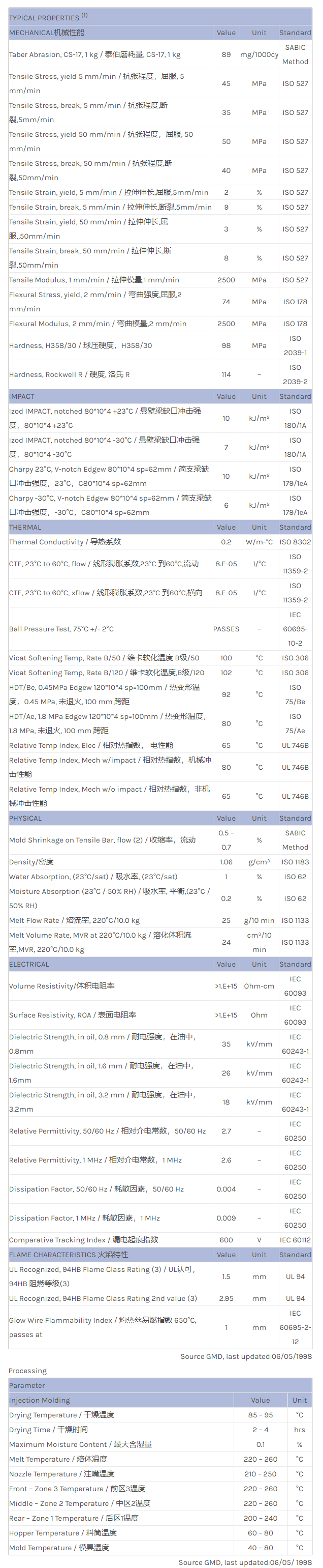 应用范围:产品描述CYCOLAC ABS GPM5500M物性表CYCOLAC GPM5500-MAGIX is a multi purpose injection moulding grade, providing a favourable balance of engineering properties. This material has a wide processing window. It i