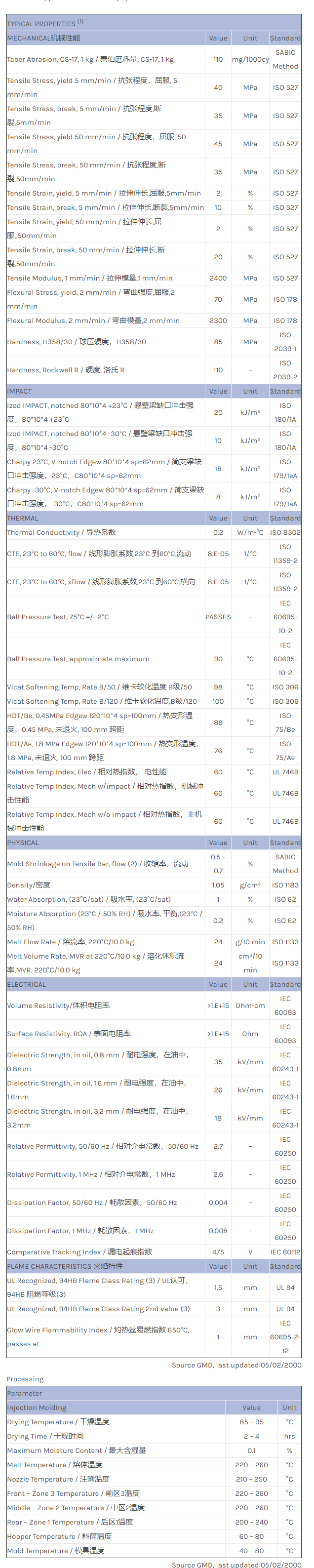 应用范围:产品描述CYCOLAC ABS GPM5500P物性表CYCOLAC GPM5500P is a multi purpose injection moulding grade, providing a favourable balance of engineering properties. CYCOLAC GPM5500P has a wide processing window. It is