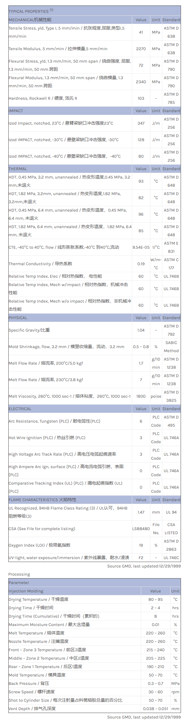 主要特点;抗冲击强度与刚性、易注塑性、优异的光泽度和优质色泽的结合。