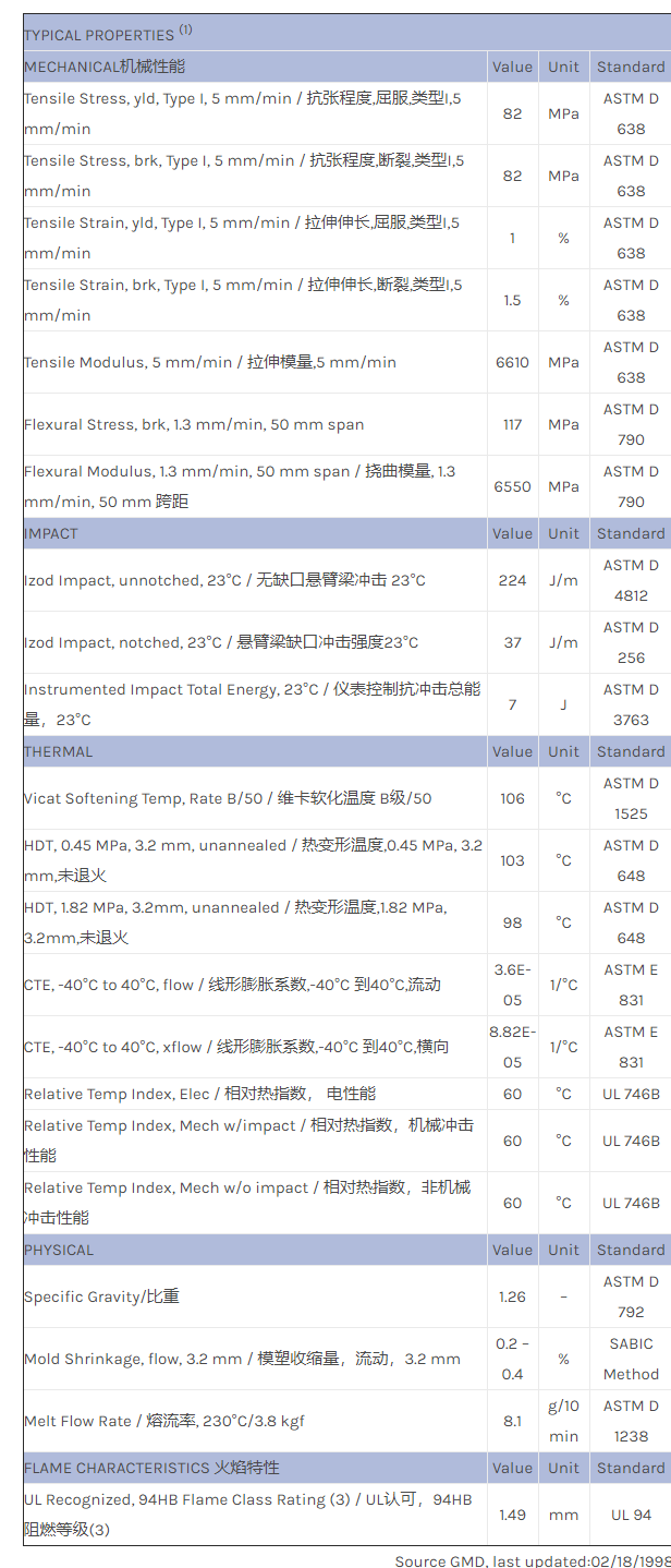 应用范围:产品描述CYCOLAC ABS CGF20物性表20% glass filled ABS. High flow. Business machines, copier housings.