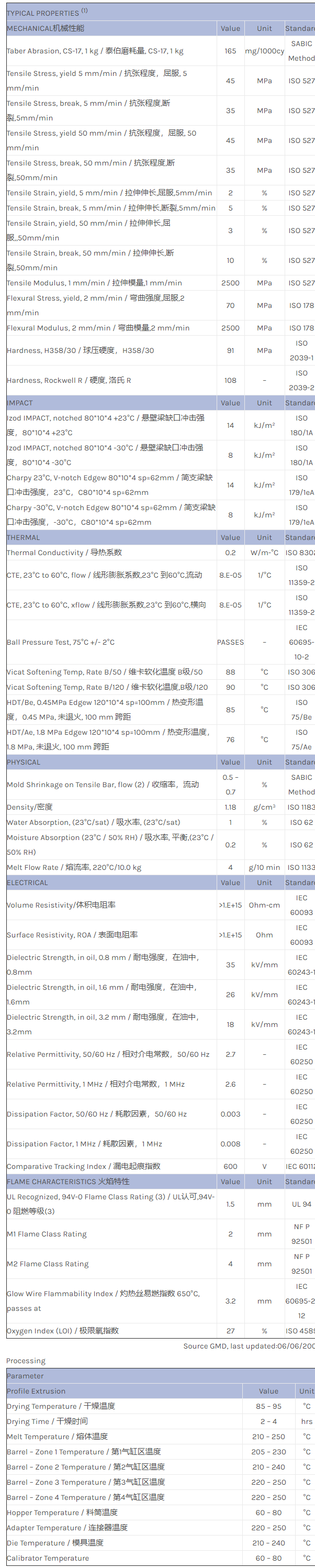 应用范围:产品描述CYCOLAC ABS S851物性表CYCOLAC S851 is a flame retardant ABS extrusion grade.