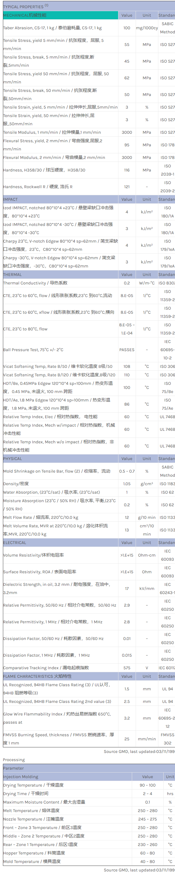 CYCOLAC ABS G363物性表