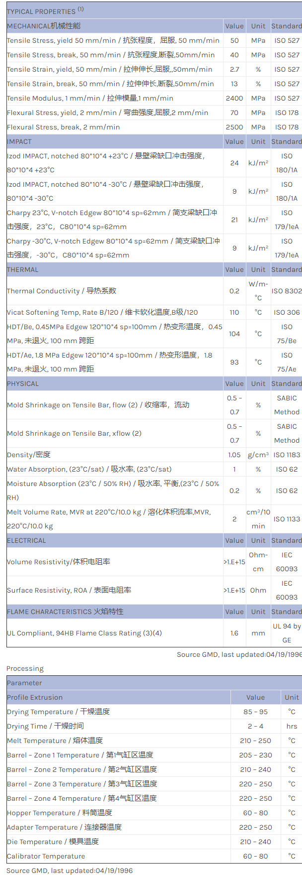 CYCOLAC ABS XS858物性表
