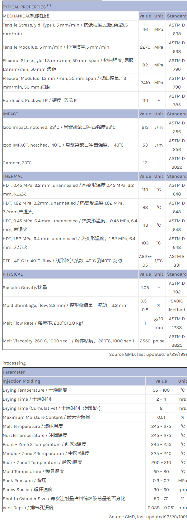 CYCOLAC ABS Z48物性表