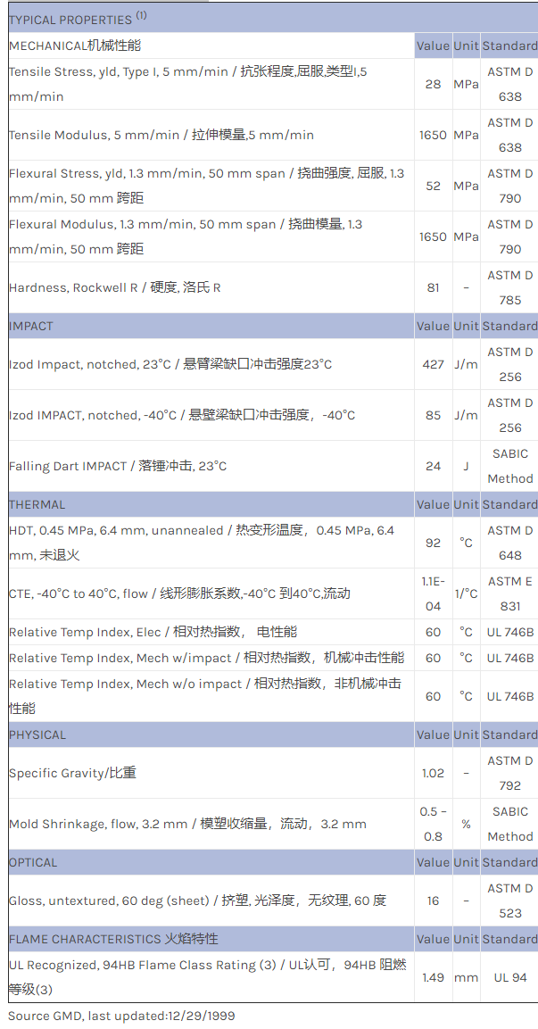 应用范围:产品描述CYCOLAC ABS CGA物性表CGA的加工方式:挤塑和热成型特点:可控光泽度,良好的保色性