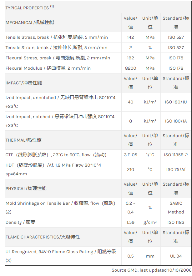 江门LNP THERMOCOMP JF006是一种聚醚砜(PES)产品,含有的填充物为30%玻璃纤维增强材料,可以通过注射成型进行加工。