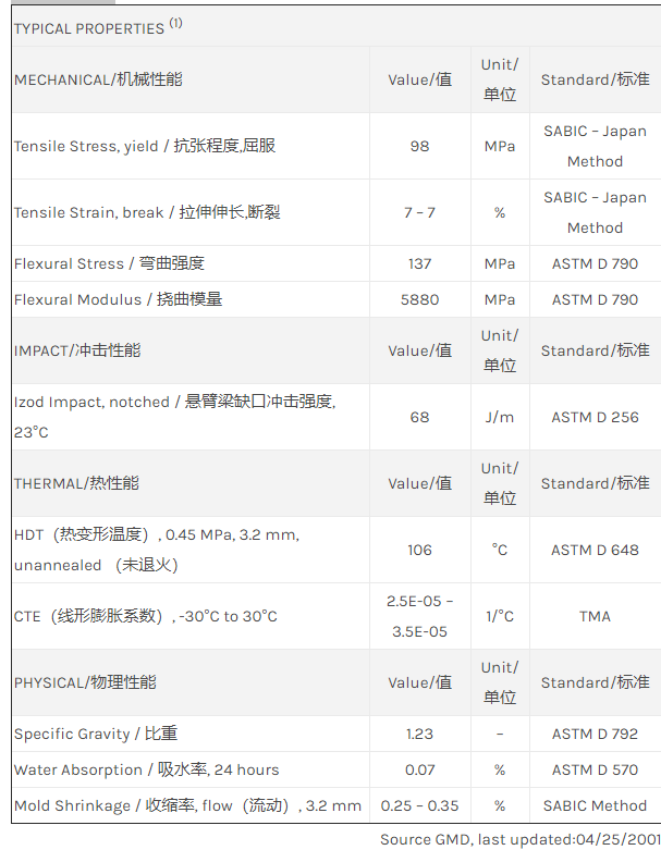 “NORYL CN1134 resin是一种聚苯醚+PS(PPE+PS)材料,含有的填充物为20%未指定填料\增强材料。