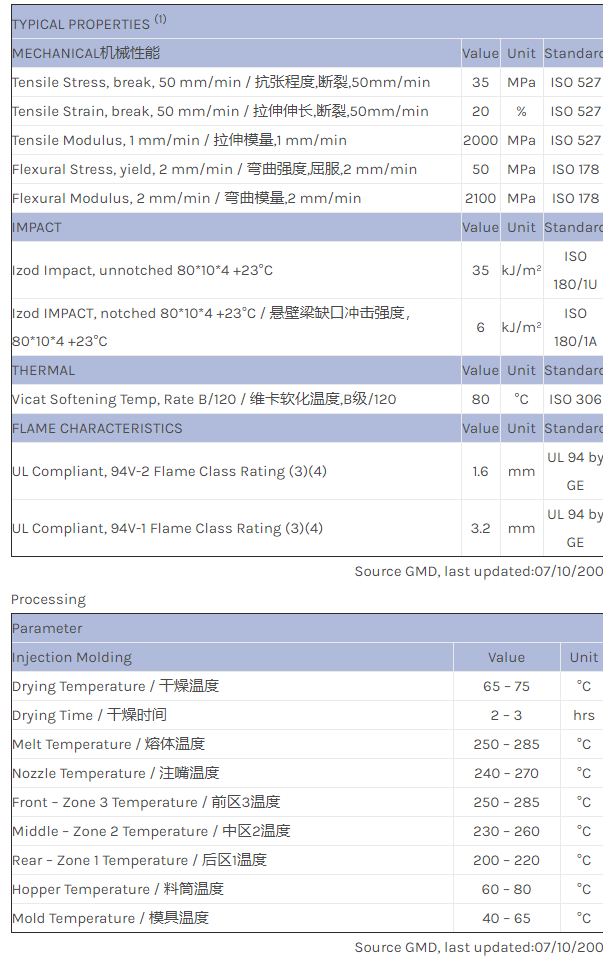 应用范围:产品描述NORYL PPO EXNL0018物性表NORYL EXNL0018 is an unfilled, flame retardant, high flow material, especially used for TV bezel applications and is halogen free according to VDE/DIN 472 part 815. NORYL EXNL
