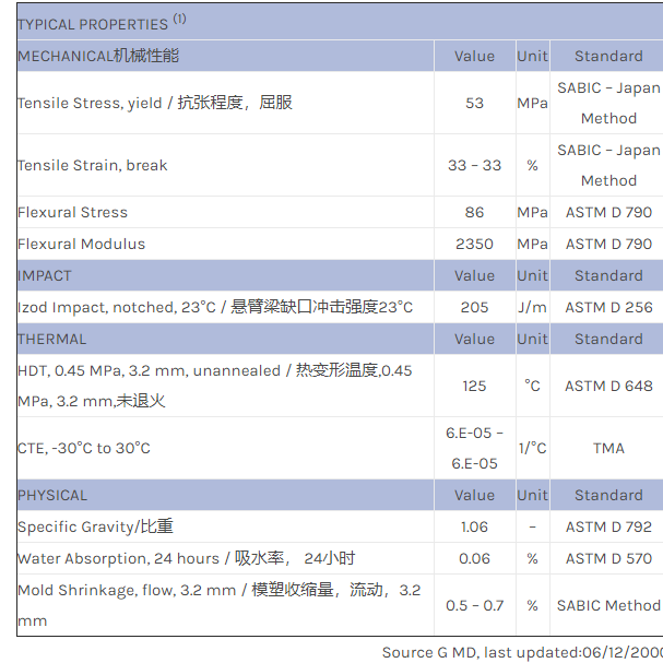 应用范围:产品描述NORYL PPO PX2629UR物性表