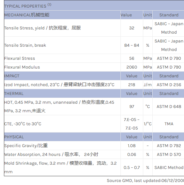应用范围:产品描述NORYL PPO PX2631物性表