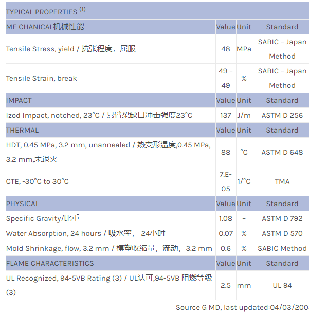 应用范围:产品描述NORYL PPO PX2803X物性表