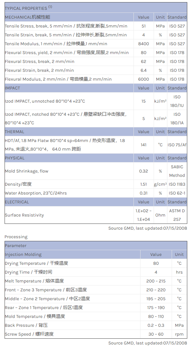应用范围: 产品描述 LNP STATKON KEL32物性表 LNP STAT-KON KEL32是一种聚甲醛(POM)共聚物材料,含有的填充物为碳纤维增强材料,加工方式为:注射成型。 LNP STAT-KON KEL32的主要特性有: 通过ROHS认证 传导性 润滑