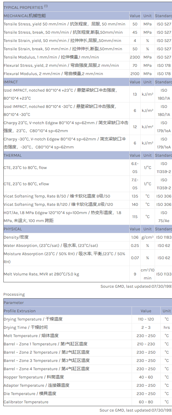 应用范围:产品描述NORYL PPO EN130S物性表Noryl EN130S is an extrusion grade with a Vicat B/120 temperature of 140 deg C, developed for profile extrusion and in compliance with Food contact regulations; color limited.