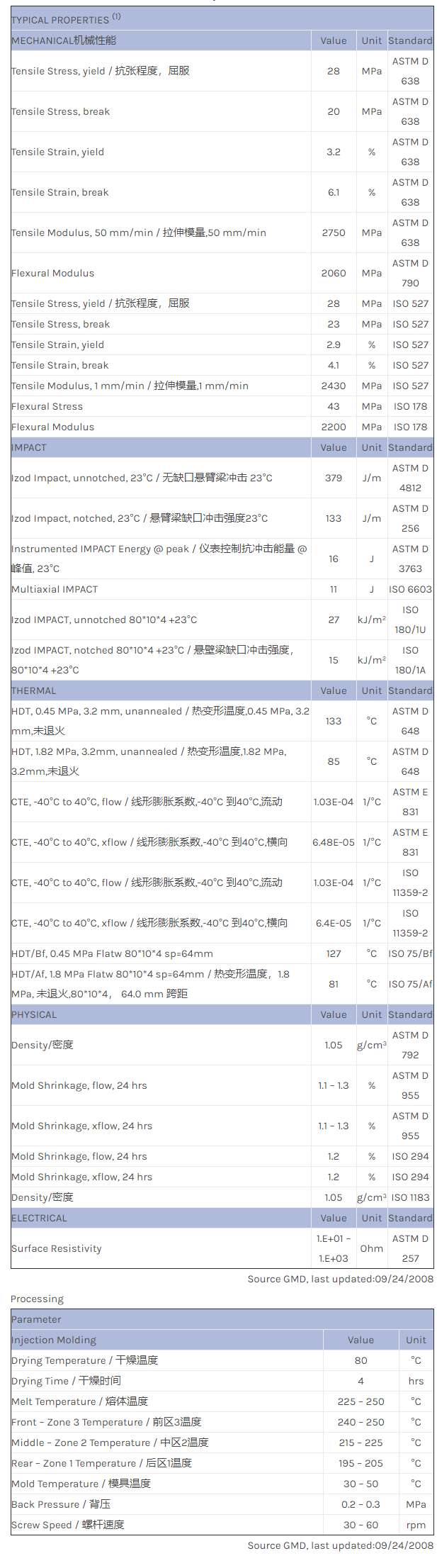 应用范围: 产品描述 LNP STATKON MFD02物性表 LNP STAT-KON MFD02是一种聚丙烯材料,含有的填充物为玻璃\炭粉,加工方式为:注射成型。 LNP STAT-KON MFD02的主要特性为:传导性。