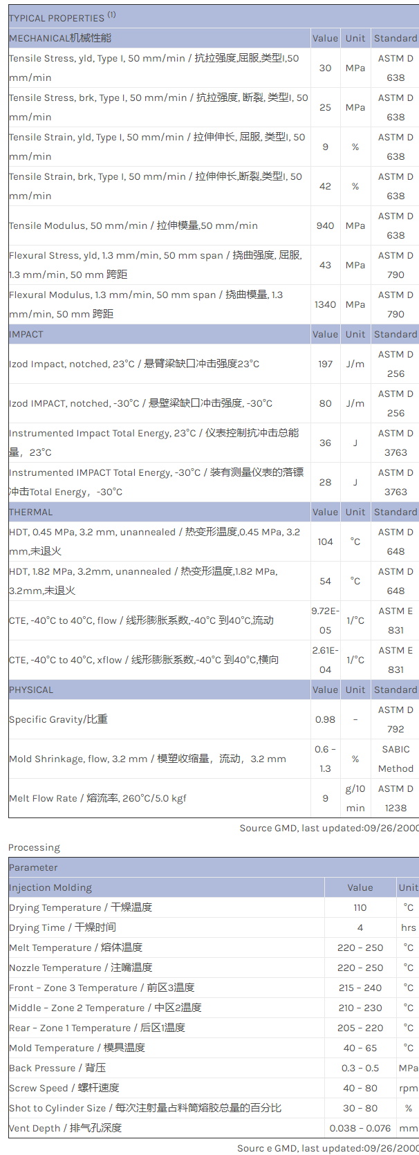 应用范围:产品描述NORYL PPO MX6200物性表PRELIMINARY DATA. PPE+PP. Automotive fascia application. Can be injection molded or extruded.